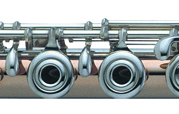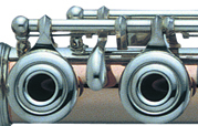 The flutes can be fashioned using traditional soldered tone holes (MS14K) or contemporary drawn tone holes (MD14K). In the process of drawing tone holes, the tone hole material is formed by pulling up metal from the tube and rolling it off at the top. It changes the inner wall of the instrument and especially playing legato becomes more effortless. Soldered tone holes are sculpted seperately and then soldered precisely on the tube. This method creates an even and identical wall of the tube and offers an even more direct response as well as a greater stability of the body.
