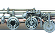 The 14K Maesta flute has an optional split E-mechanism that allows for secure attacks and smooth slurs to the third octave E.