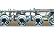 The flutes can be fashioned using traditional soldered tone holes (MS18K) or contemporary drawn tone holes (MD18K). In the process of drawing tone holes, the tone hole material is formed by pulling up metal from the tube and rolling it off at the top. It changes the inner wall of the instrument and especially playing legato becomes more effortless. Soldered tone holes are sculpted seperately and then soldered precisely on the tube. This method creates an even and identical wall of the tube and offers an even more direct response as well as a greater stability of the body.
